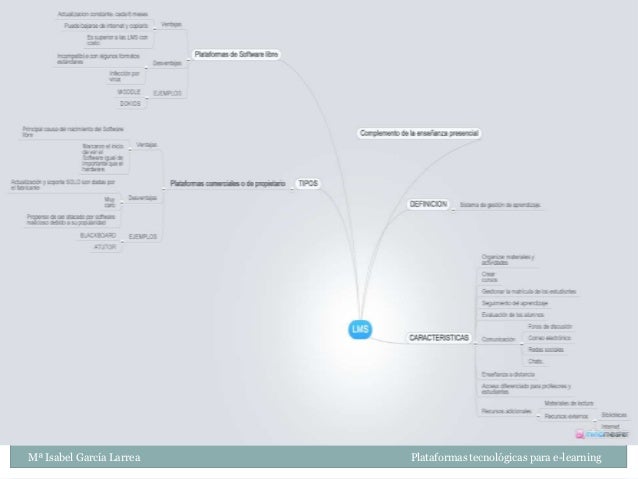 - TIPOS DE LMS Dependiendo de la naturaleza del sistema e-learning que se quiera implementar se pueden seleccionar varios tipos de plataforma, influenciada por los costos.1. Plataformas de Software Libre2. Plataformas Comerciales o de PropietarioMª Isabel García Larrea Plataformas tecnológicas para e-learning